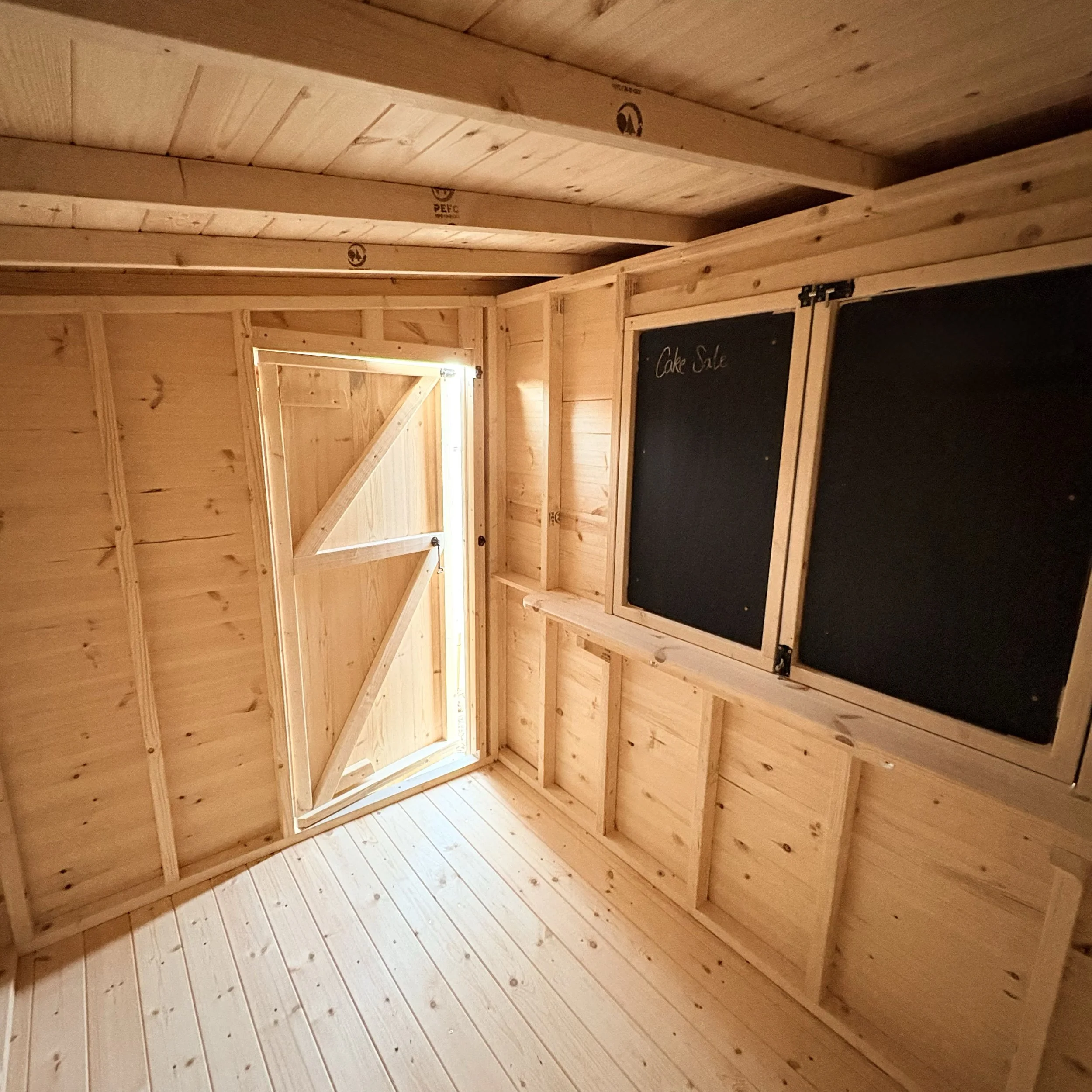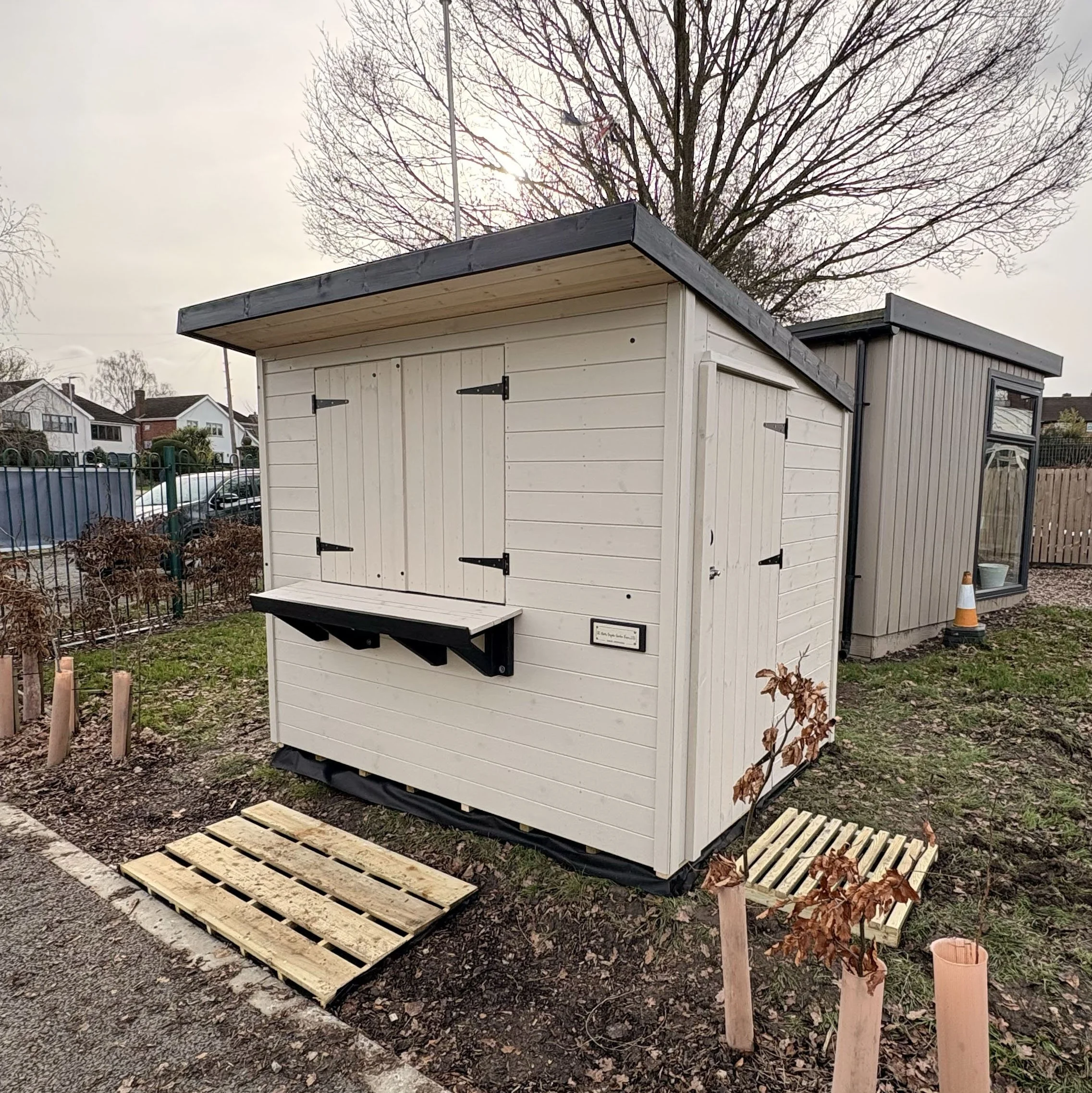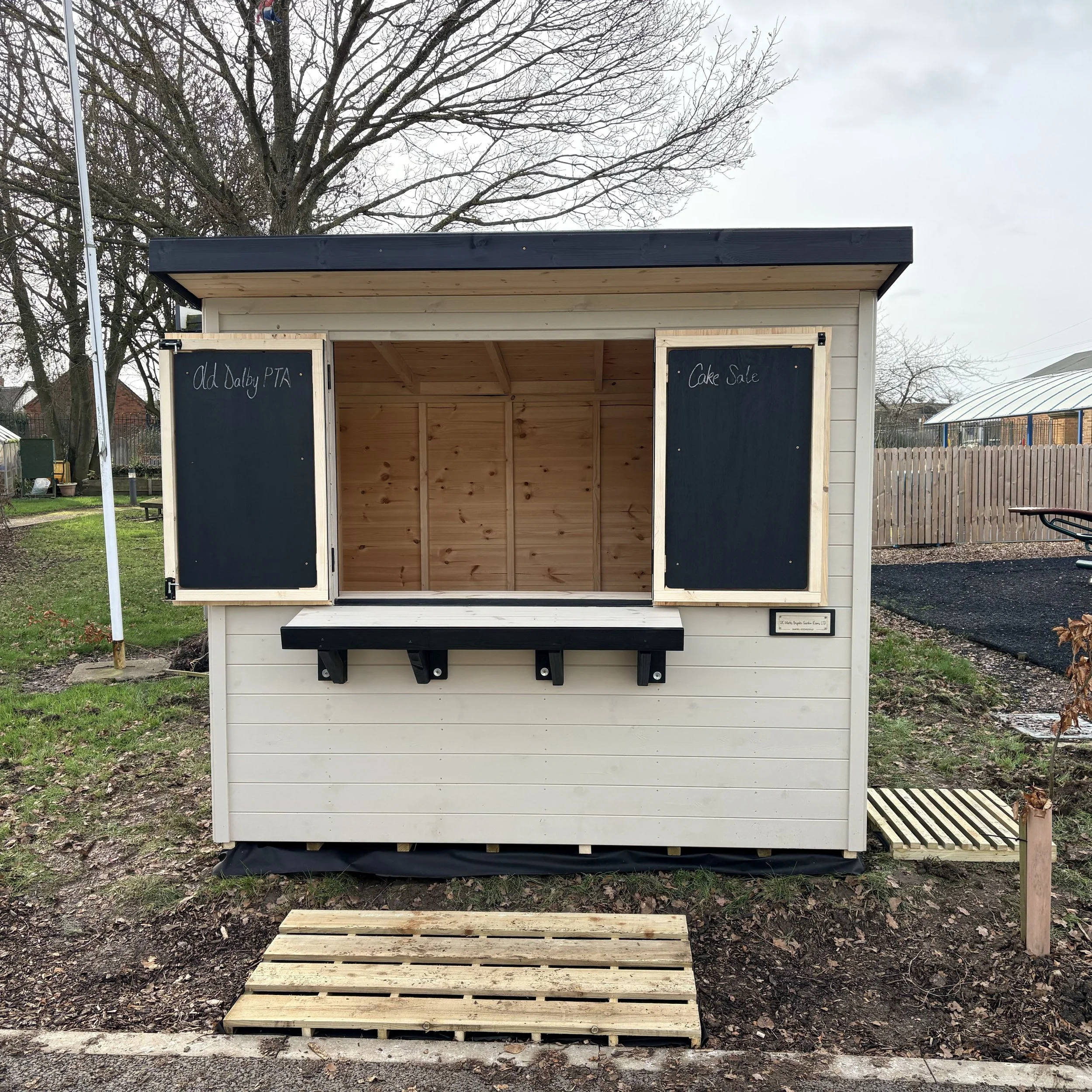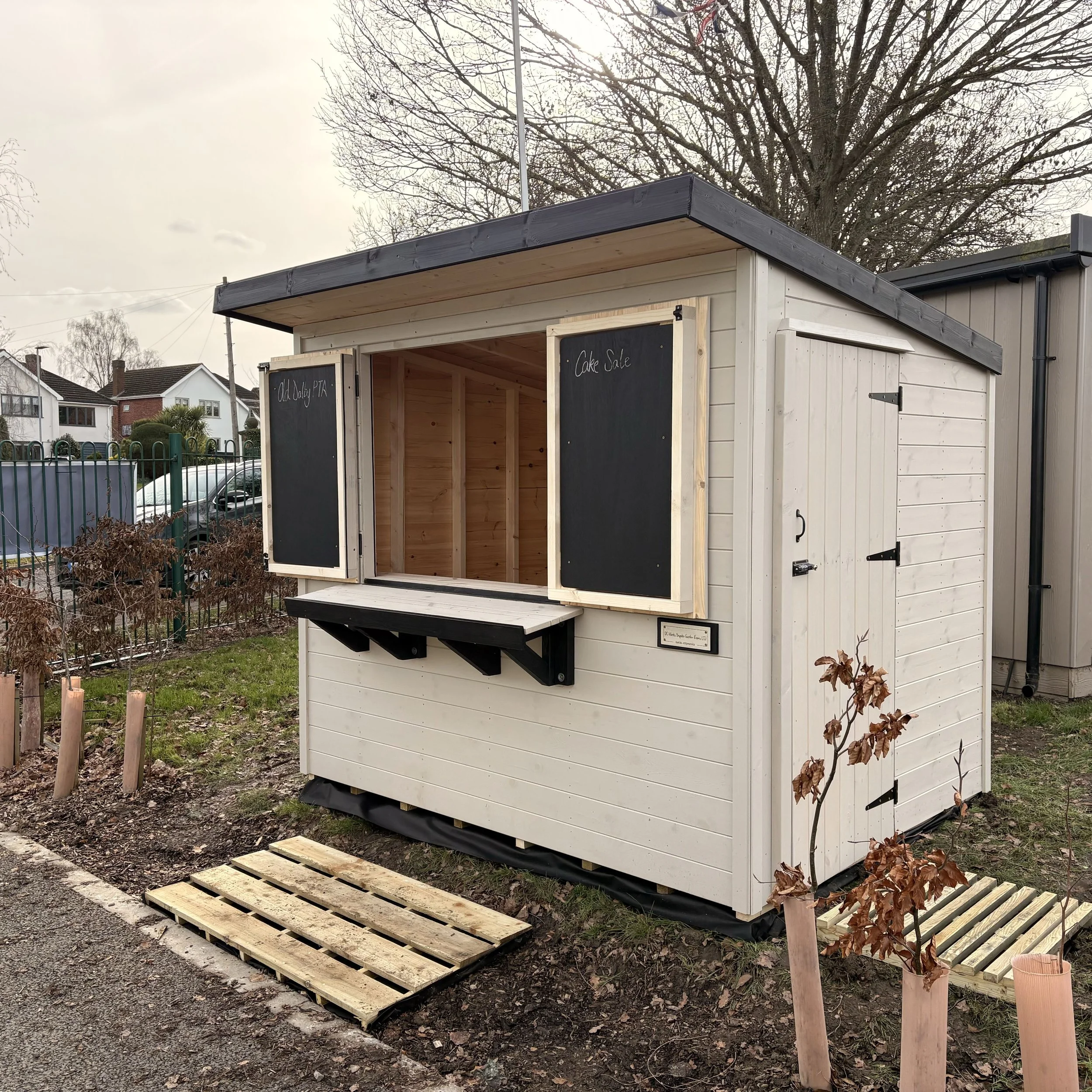 A compact and versatile kiosk designed to provide secure storage for PTA equipment during the week, while transforming into a serving point for the school’s weekly cake sale and summer gatherings, creating a simple and welcoming hub for the school community.